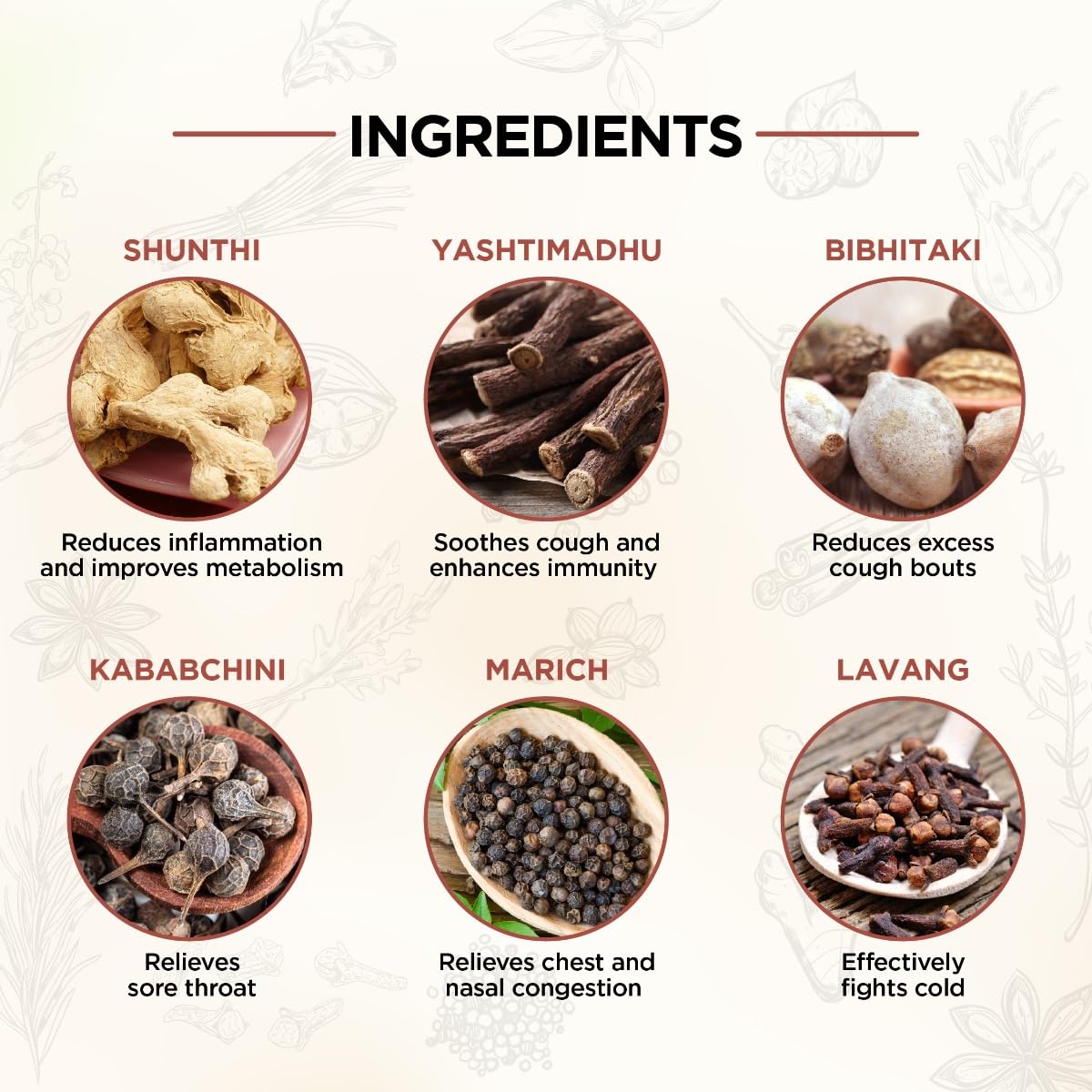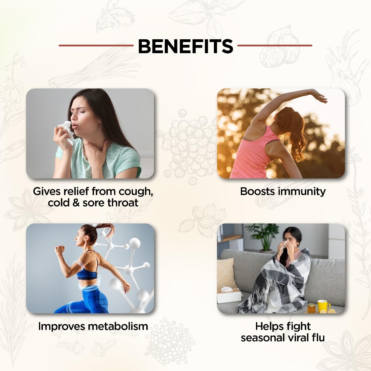 Pleasant in Taste & Aroma: The palatability of the product is emphasized indicating that it is formulated to have a pleasant taste and aroma. This can make the kadha more enjoyable to consume especially for those with a sensitive palate.