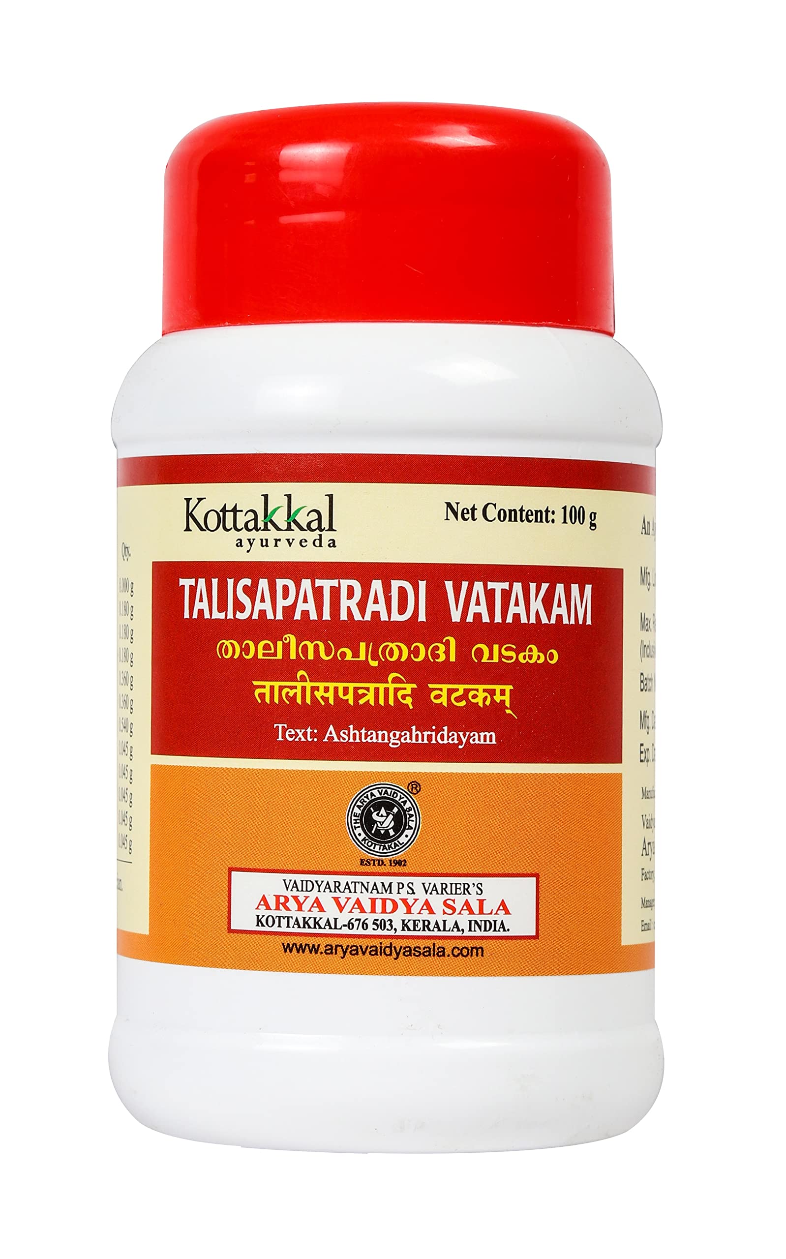 Kottakkal ayurveda Thalisapatradi Vatakam - 100Gm Improves Health - Pack Of 3 Tablet