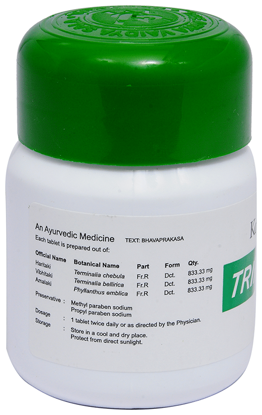 Kottakkal Ayurveda Triphala Tablet aids in the enhancement of immunity and helps to maintain a healthy digestive function. It contains Amalaki, an antioxidant-rich fruit with detoxifying properties that improve overall health by lowering stress and weakness in the body. Haritaki is used to relieve indigestion, gastritis, cough, colds, asthma, eyesight disorders, urinary tract infections, and hair and skin problems. It also contains Bibhitaki, which is utilised to purify the body and ease the Kapha and Vata doshas.