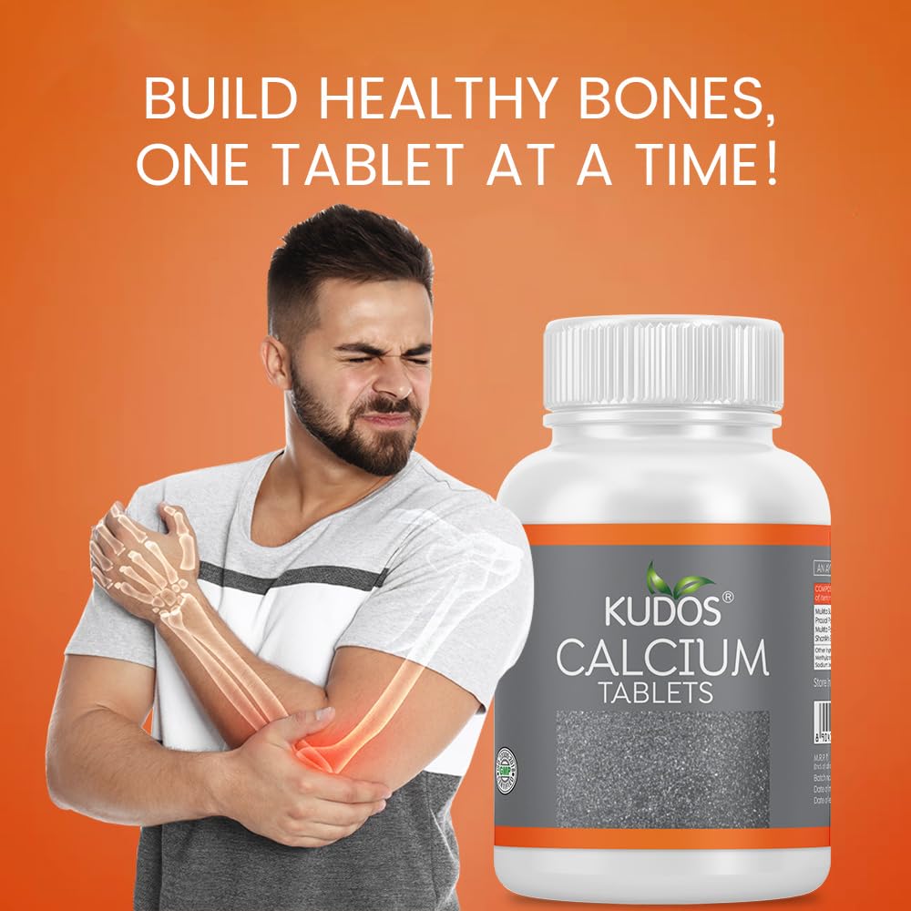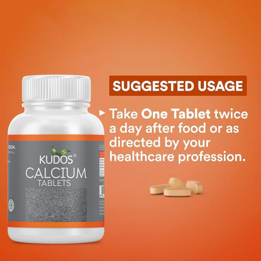 Kudos Calcium Tablets 100 Tablets for Calcium Deficiency & Osteoarthritis Relief. Support your bone and joint health with Kudos Calcium Tablets specially formulated to help manage calcium deficiency osteoporosis and osteoarthritis. With a powerful dose of essential calcium these tablets promote stronger bones healthier joints and improved mobility. Ideal for adults seniors and individuals at risk of bone loss Kudos Calcium Tablets help restore calcium levels in the body reduce joint discomfort and support overall musculoskeletal health. 100 Tablets Sufficient for up to 50â100 days depending on dosage.