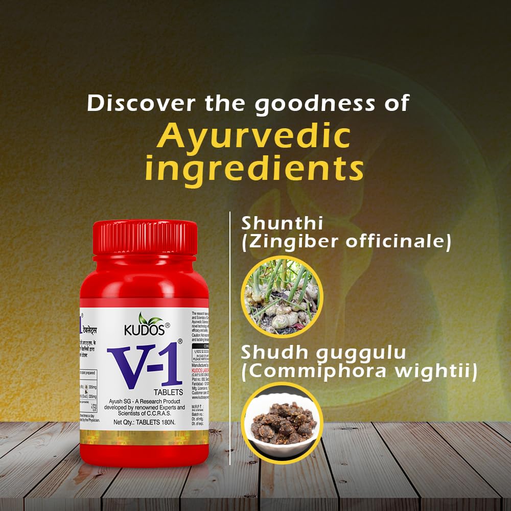 Ayurvedic Inspiration: Crafted with care Kudos V-1 Tablets contain a proprietary blend of natural ingredients inspired by Ayurvedic wisdom.