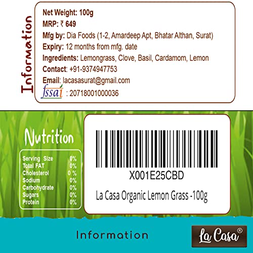 You'll LOVE our Premium Lemongrass tea is your detox tea. -- Here's Why: - 100% Natural OrganicLemongrass tea is your detox tea. - Packed in a no barrier Plastic Container let us tell you how important that is when using high quality Lemon Grass! - La Casa is a Indian Brand selling food products for over 15 years buy with confidence! - Enjoy Organic Lemongrass with your loved ones.