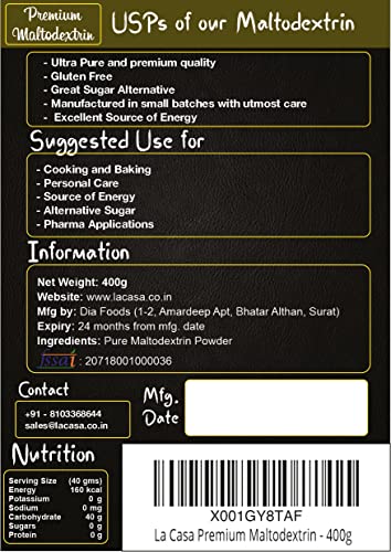 DIGESTION - Maltodextrin is a carbohydrate that helps supply energy for workouts. It also aids digestion and is a common food additive. SOURCE OF CARBOHYDRATES - The body uses carbohydrates as its main source of energy especially during exercise. Maltodextrin can be used to replace the carbohydrates lost through sweat during an intense workout or athletic event. INTRA WORKOUT SUPPLEMENT - This maltodextrin powder is made from non-GMO corn starch and can be added to your pre-workout shake or intra workout drink. It's also great in smoothies! PROMOTES ATHLETIC ENDURANCE - Maltodextrin powder supplies energy which works for pre-workout and intra workout. This may increase athletic endurance during workouts.
