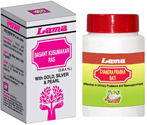 Lama Basantkusmakar Ras - 25 Tablets with Gold + Lama Chandraprabha bati 100 Tablets (Combo Pack) highly effective classical Ayurvedic Products from Lama Pharmaceuticals. ISO 9001:2000 AND GMP CERTIFIED Product: So be sure of the purity quality and authenticity.