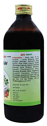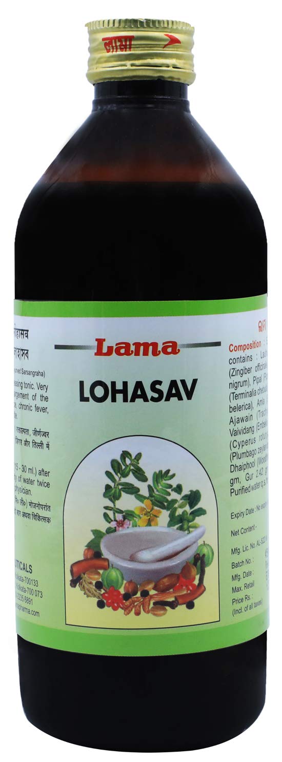 This preparation contain purified iron and indicated in Iron Deficiency and Anemia. It is useful in dropsy the liver and spleen conditions low appetite swelling inflammation piles fistula. Intake of Lohasava reduces Vata and Kapha. It increases Pitta and heating in nature.