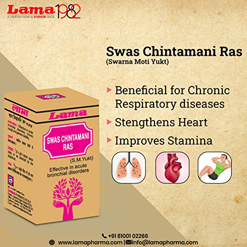 Lama Swas Chintamani Ras 25 Tablets with Gold + Lama Shwas Kuthar Ras 10 gm (Combo pack) a classical ayurvedic product from Lama Pharmaceuticals a Trusted name Ayurveda Since 1982.