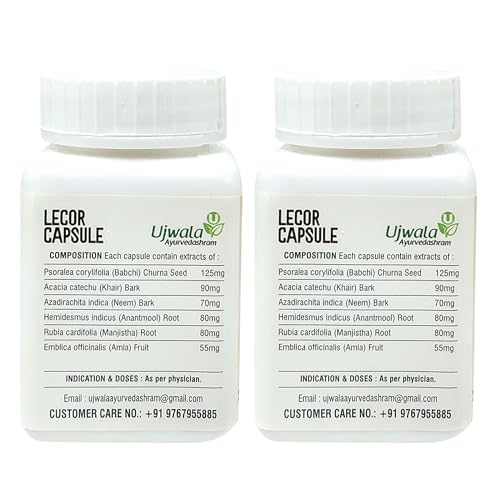 Lecor Capsule Pack of 2 (60 Cap) I Ayurvedic Medicine for Vitiligo I Leukoderma Treatment I Need to use with Combination of Livcon Capsule and Lecor Oil
