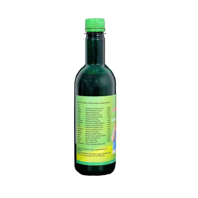 Each 10 ml syrup contains - Trifala 100 mg, aloe vera 100 mg, amaltas 100 mg, gokshur 100 mg, arjuna 100 mg, vidang 75 mg, punarnava 60 mg, sh. Guggulu 60 mg, varun 50 mg, nisotha 50 mg, swarnpatri 50 mg, shilajeet 50 mg, daruhaldi 50 mg, dalchini 40 mg,