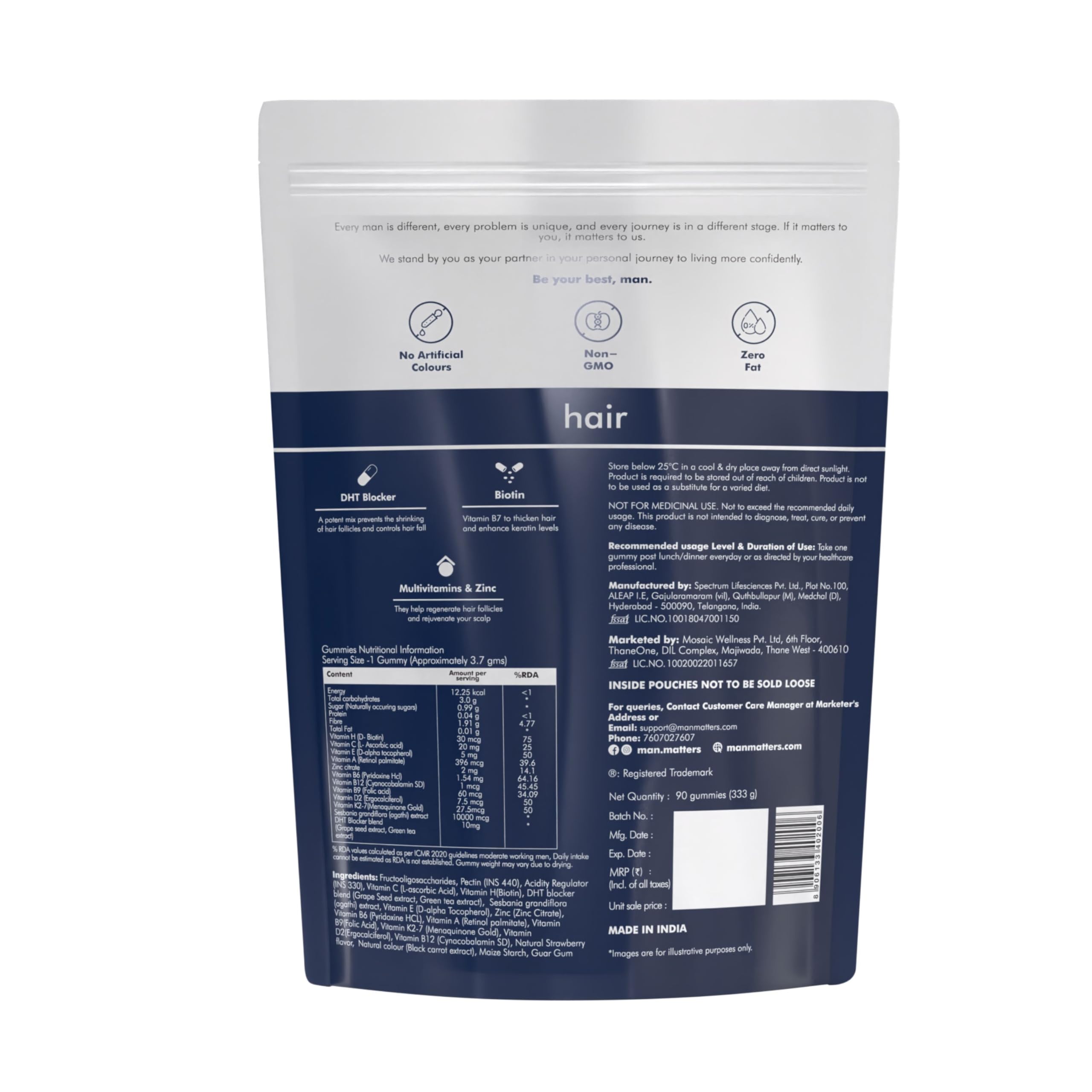 Man Matters Biotin Hair Gummies | 90 Day Pack | Biotin DHT Blockers Vitamin A C E Fibre & Zinc | For Stronger and Healthier Hair | Strawberry Flavour | 100% Vegan & Gut Friendly