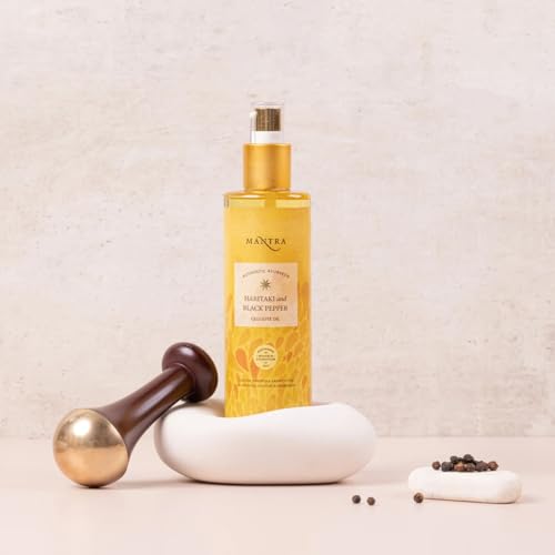 A rare combination of potent herbs like Black Pepper Haritaki and Mandukaparni in Apricot Kernel and sesame Oil this therapeutic oil helps smooth out cellulite. Haritaki tones the skin while Black Pepper improves blood circulation and clears the pores. Apricot Kernel Oil reduces stress and inflammation and Mandukaparni stimulates human collagen formation resulting in leaner-looking skin. With regular use fat accumulation beneath the skin is reduced improving the skin elasticity.