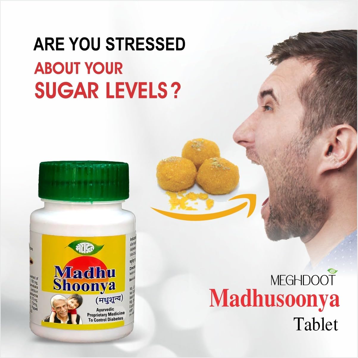 Meghdoot Madhu Shoonya Supplement Ayurvedic Sugar Support | Promotes Healthy Glucose Levels | Natural Formula for sugar Management 100 Tablets (50 Tablets Each - Pack of 2)