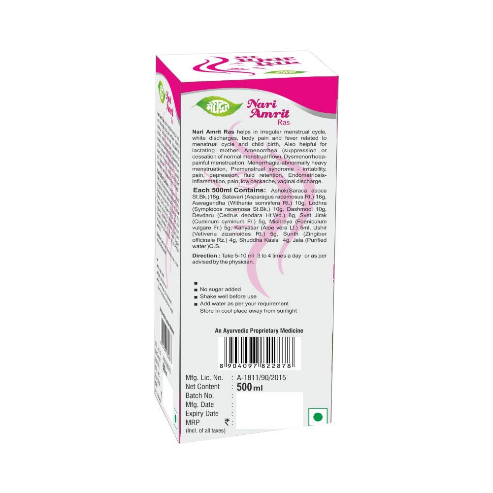 Safe non-habit forming and chemical-free –This Meghdoot nari amrit 100% herbal formula contains no artificial preservatives no added sugar and no harmful chemicals. it is safe for regular use and suitable for women of all age groups including young adults