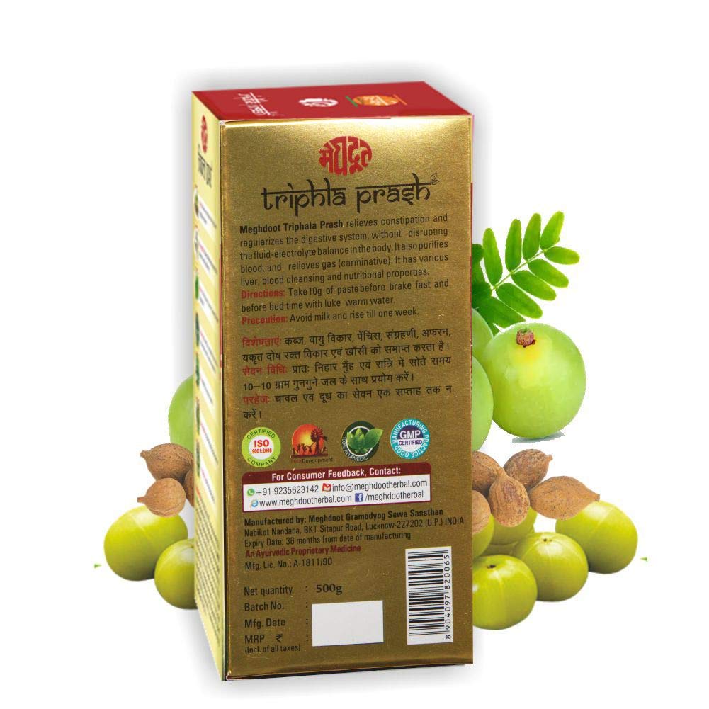 Meghdoot Triphala Prash is a traditional Ayurvedic formulation made using a blend of three well-known fruits – Amla (Indian Gooseberry) Haritaki and Bibhitaki. It is traditionally used in Ayurveda as a part of a balanced wellness routine. This product may be included in a daily diet to support internal balance and overall well-being. Meghdoot Triphala Prash is suitable for adults looking for a natural herbal supplement to complement their lifestyle. Free from artificial colors and preservatives it aligns with traditional Ayurvedic practices.