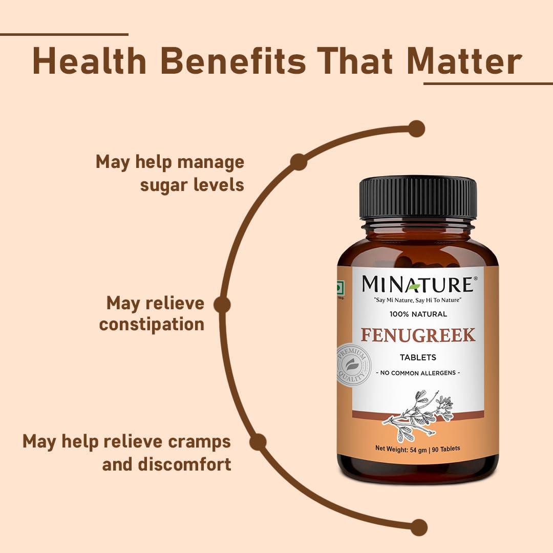 mi nature Fenugreek seed Tablets (methi Dana powder Tablets) | For immunity and Digestion| NON-GMO |Plant Based | 90 Tablets 45 Day supply