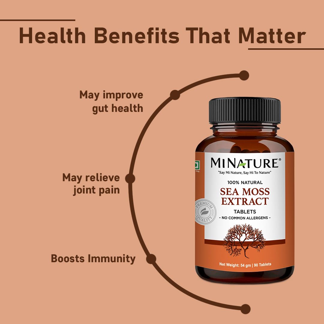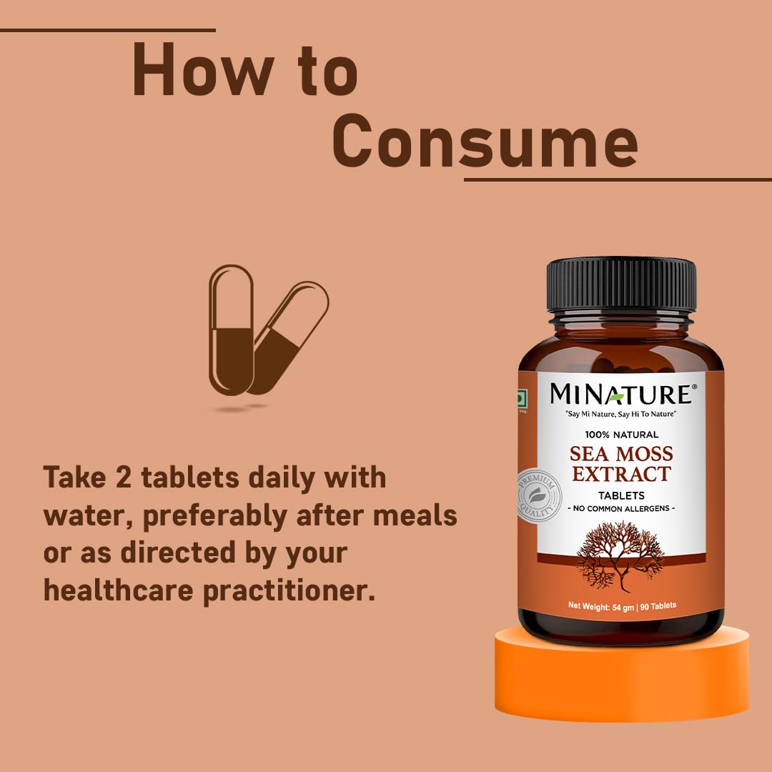 mi nature Sea Moss Extract Tablet| Pure & Natural | Herbal care | Non-GMO Vegan Gluten Free | from India | 500mg 90 Tablets 45 Days
