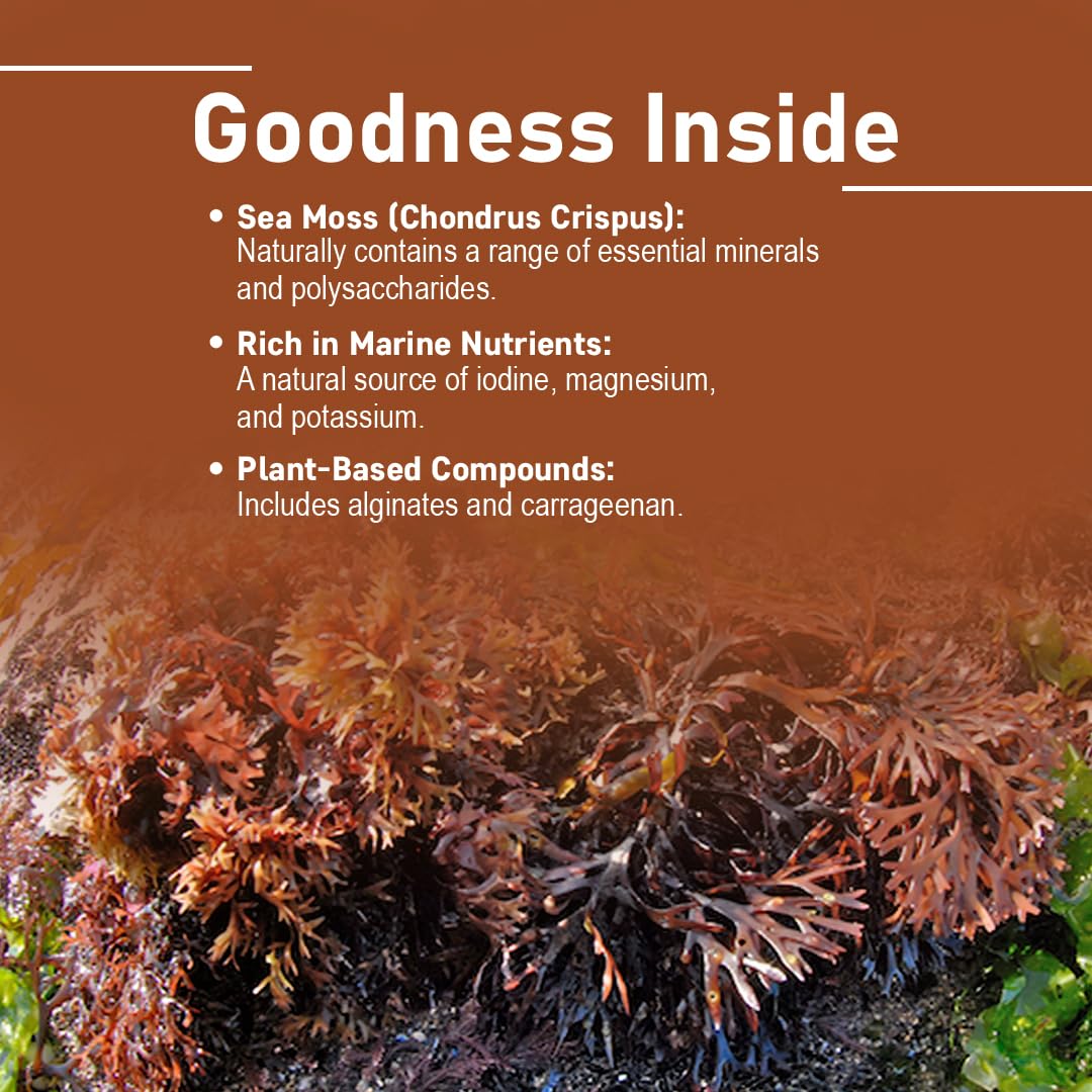 High-Quality Sea Moss: Made from premium-quality sea moss sourced from the clean nutrient-rich waters of India. The extract is packed with essential minerals and vitamins for a holistic health boost.