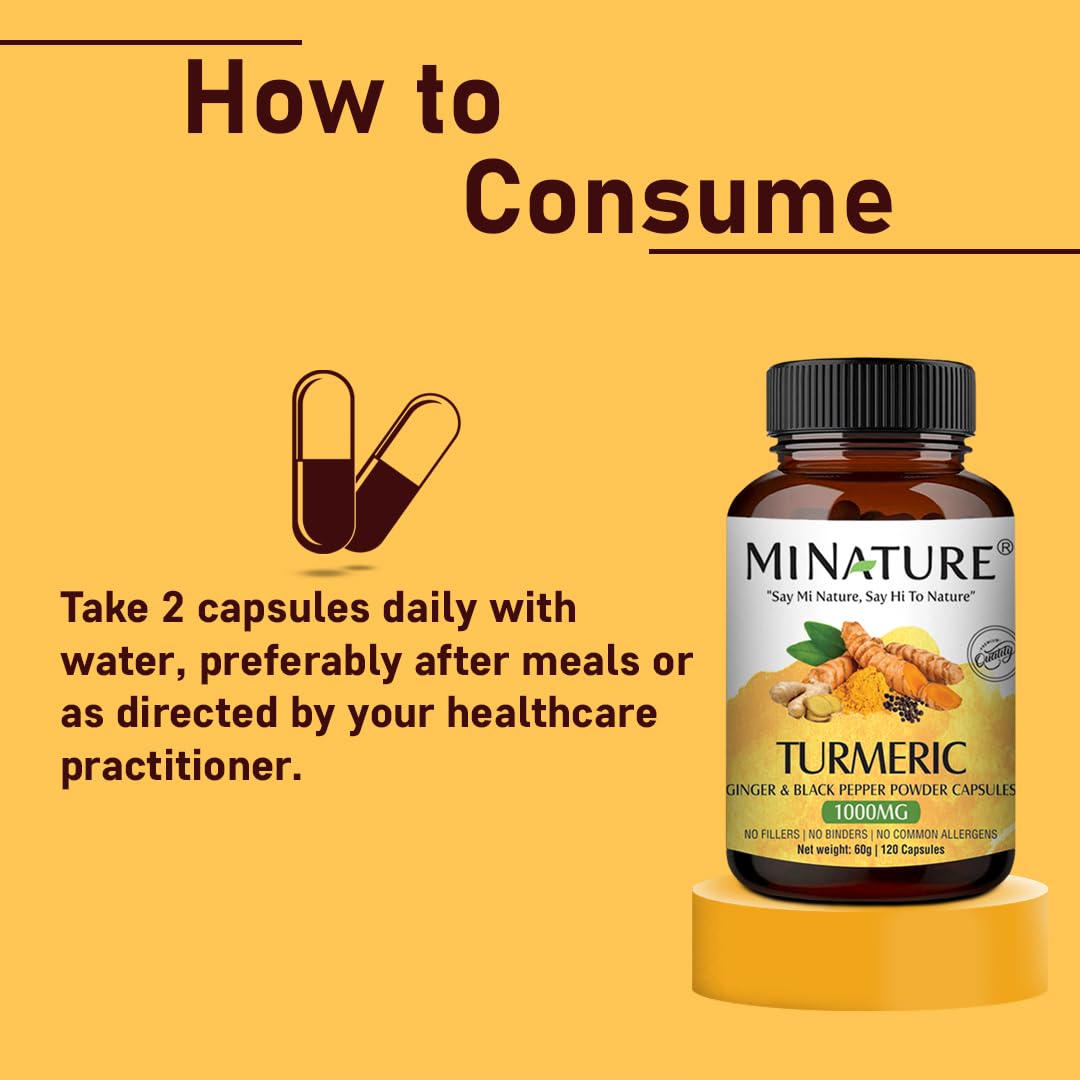 mi nature Turmeric Capsules |Curcuma with Ginger and Black Pepper |All Natural| 1000* mg 120 Vegan * | Made in India | 2 Months Supply*