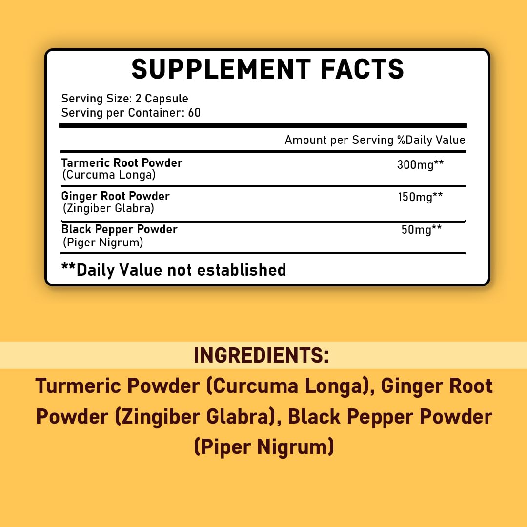 Enhanced Formula: The combination of turmeric ginger and black pepper supports optimal absorption for maximum effectiveness.