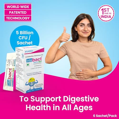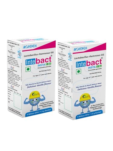 Morepen INTEBACT INSTA 5BN CFU |Probiotics Supplement for Gut Health, Vanilla flavour - 6 Sachets pack of 2