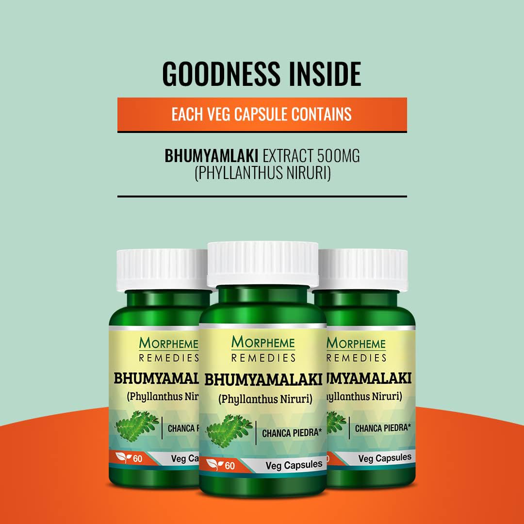 Supports Normal Detoxification Process: Morpheme Remedies Bhumyamalaki Capsules support detoxification by promoting liver health and enhancing digestion. The herb's antioxidant properties help improve overall well-being.