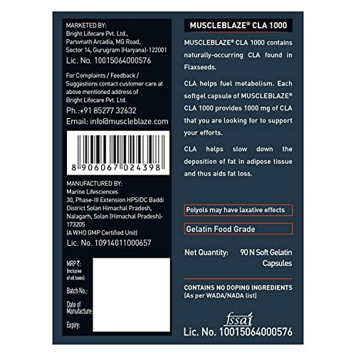 Muscleblaze cla 1000 is a must have supplement if you are trying to shed that unwanted fats from your body. It promotes the secretion of omega 6 fatty acids and eliminates bad cholesterol. The active antioxidants in cla 1000 helps fight free radicals and oxidants present in the body. Bad cholesterol causes various health problems including fat deposit in arteries leading stroke unstable blood pressure reduced blood flow to brain and numb limbs to name a few. Consume 1 capsule 2 to 3 times with meals daily to get the best results.