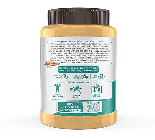 MuscleBlaze Fit Classic Peanut Butter with Omega 3 & 6 (Crunchy, 1kg) | 25.5g Protein | Fibre Rich, No Trans Fat