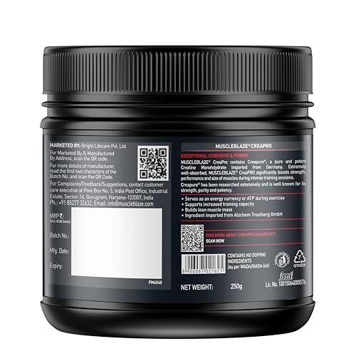 • CREATINE MONOHYDRATE SUPPLEMENT- MuscleBlaze CreaPRO delivers 3 g of Creapure in each serving