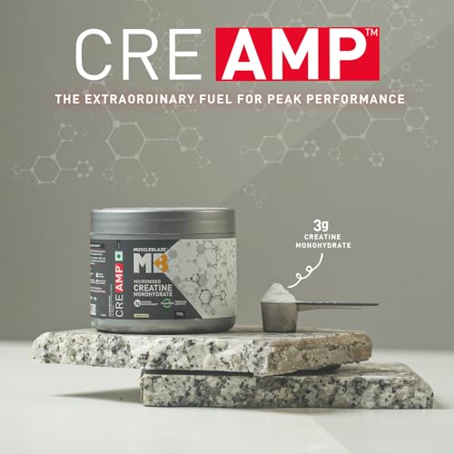 MuscleBlaze Micronised Creatine Monohydrate CreAMP Powder, Unflavoured (32 Servings, 100g) | Trustified Certified Creatine