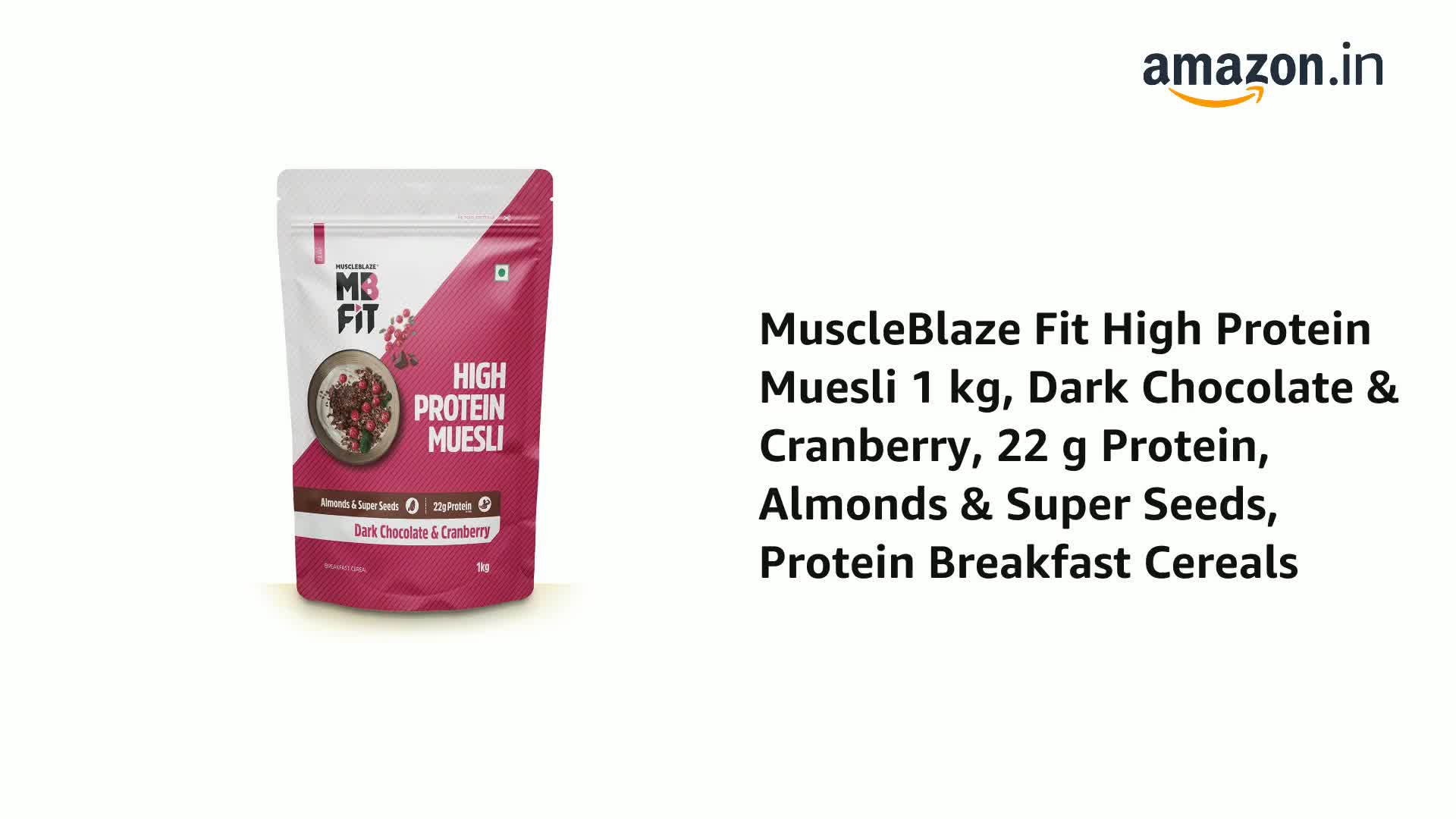 MuscleBlaze Fit High Protein Muesli (1kg, Dark Chocolate & Cranberry) | 22g Protein | With Raisins, Almonds & Super Seeds,High Protein Breakfast Cereals