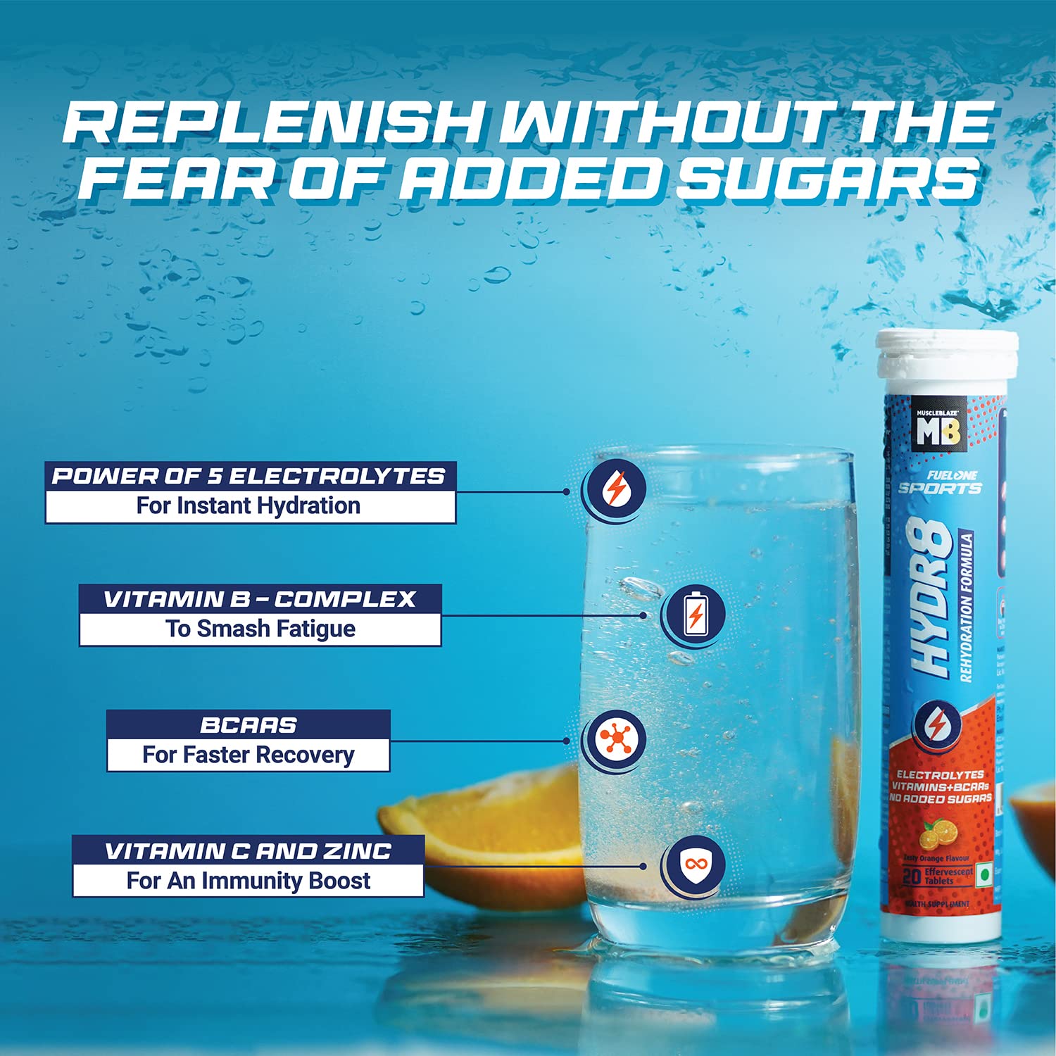 • REDEFINE PERFORMANCE WITH MUSCLEBLAZE FUEL ONE SPORTS HYDR8: An instant rehydration formula that enables superior rehydration by supporting electrolyte balance reloading essential nutrients and allowing individuals to bounce back with renewed vigour