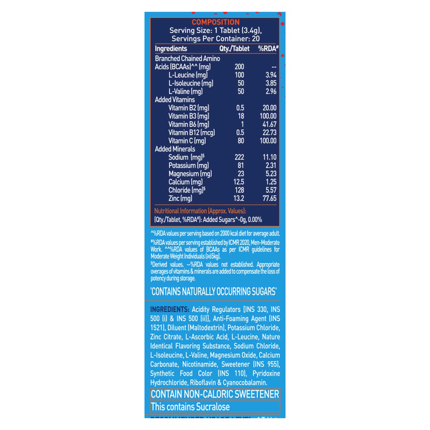 • COUNTER DEHYDRATION OPTIMISE RECOVERY: MuscleBlaze Fuel One Sports Hydr8 replaces fluids lost via sweat enabling you to steer clear of dehydration with its five essential electrolytes (Sodium Potassium Calcium Magnesium Chloride) and BCAAs which fuel fast