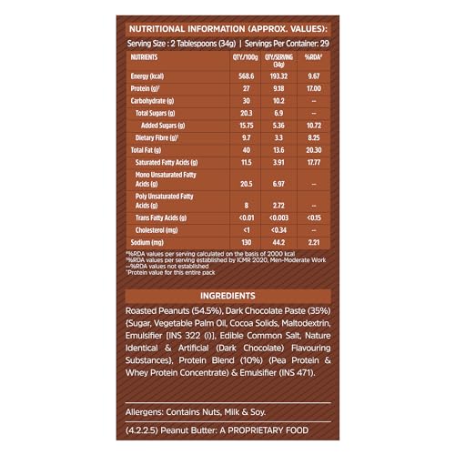 • NO ADDED SALT OR PRESERVATIVES: This High Protein Peanut Butter in crunchy dark chocolate flavour contains no added salt or preservatives to provide a clean source of nutrition