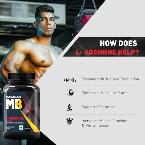 • L ARGININE CAPSULES FOR MAX PUMP: MuscleBlaze L-Arginine gives 500 mg of arginine per capsule which boosts the production of nitric oxide in the body for max pump