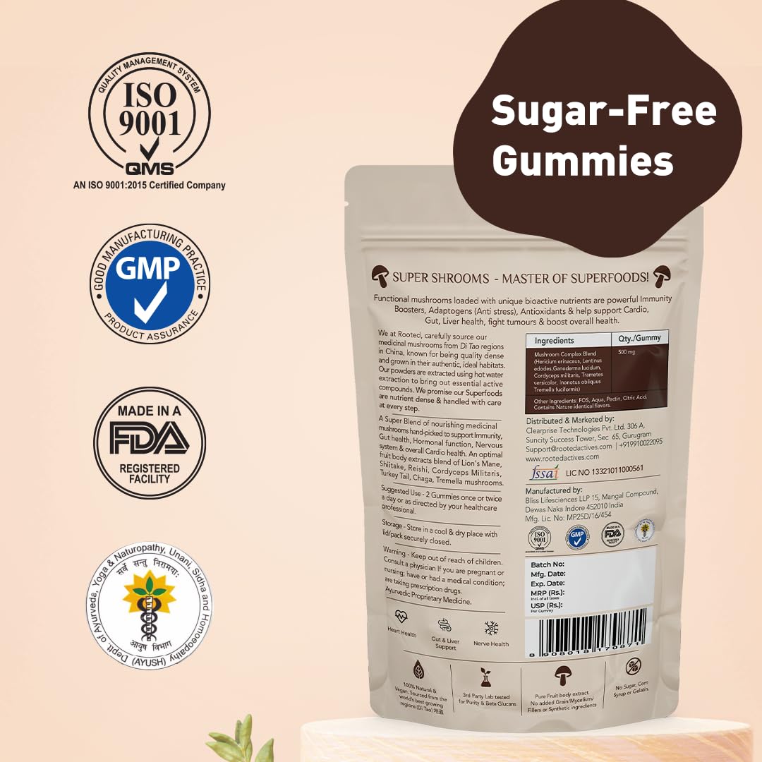 Delicous Guava flavoured No Added Sugar Gummies with 500 mg of 7 Mushrooms extract extract per gummy.