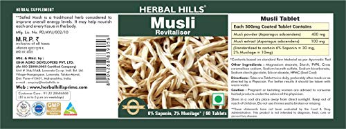 Herbal Musli Tabletsof 500 mg 60 Tablets Dosage: 1 Tablets twice a day