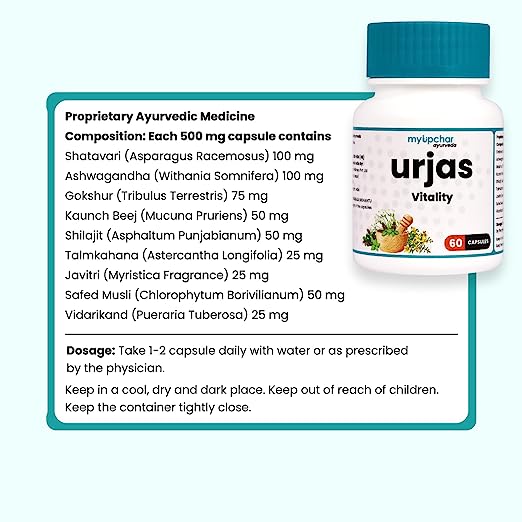 myUpchar Ayurveda Urjas Caps. for Vitality, This supplement Caps. contains a rich amount of a herb that is known for its aphrodisiac properties and for reducing & levels in the body.