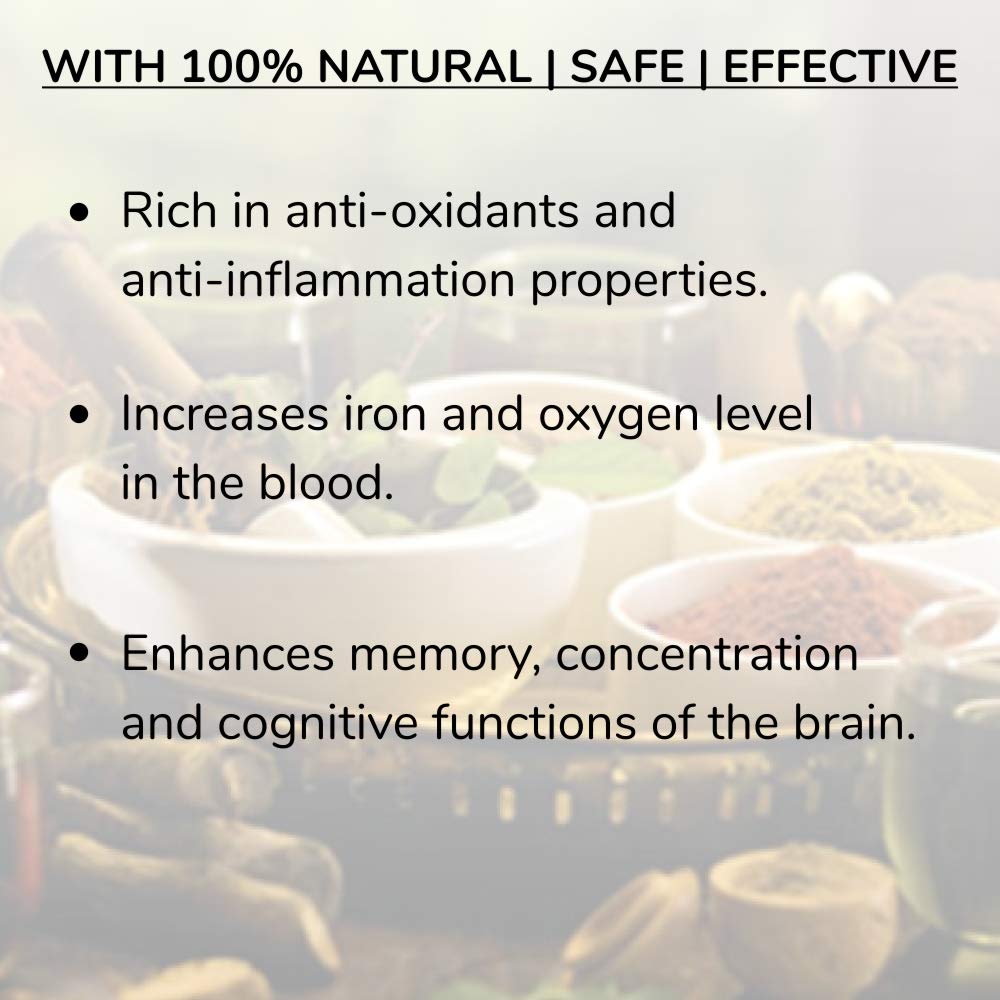 Boosts iron and oxygen levels in blood helps mind to function at peak levels
