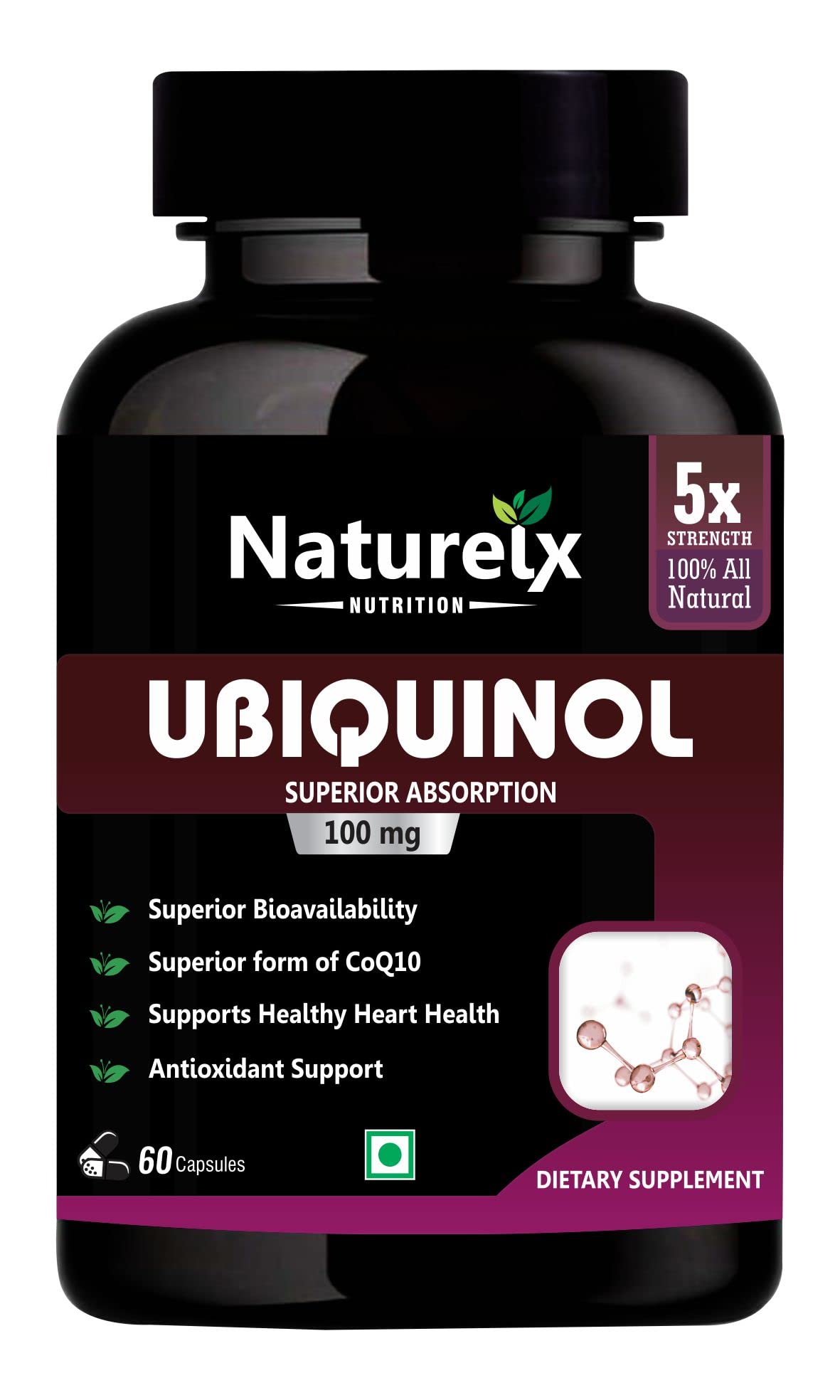 Ubiquinol is the reduced (active antioxidant) form produced by our cells and is significantly better absorbed as a supplement particularly as we age. Nutureix QH-absorb is a proprietary enhanced stability formula which has been clinically shown in humans to increase Co-Q10 levels up to 777% (6.14x) over baseline at 200 mg per day intake. Benefits: Supports cardiovascular health Supports cellular health Promotes energy production