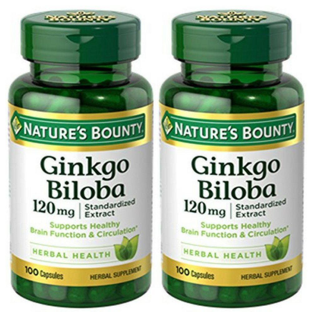 Nature's Bounty Ginkgo Biloba Standardized Extract 120 mg, Herbal Bottles, Capsule, 100 Count, Pack of 2