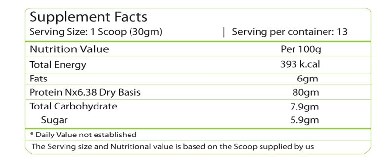 Nature's Velvet Family Protein.Instantized Protein. So Dissolves easily in Water/Milk or Juice.The natural components of Whey help to enhance the body's production of Glutathione a natural antioxidant which may provide dietary support to the immune systemUnflavored. Hence can we mixed in Atta or Curry or Dal/Sambar or any Meal Maintains big lean muscle mass - Helps in muscle gain and not fat gain. Benefits those who have Malnutrition especially useful in people who have lost teeth and have difficulty chewing food Added advantage of BCAA for preserving Muscle Glycogen Provides Complete and Balanced Nutrition More Protein per Serving. Very Low Carb and Zero Sugar For Sports person who have increased need of daily Protein requirement. 100% SATISFACTION GUARANTEE: Our Products are manufactured to bring CUSTOMER DELIGHT. NO PRESERVATIVES NO ADDED SUGAR NO GLUTEN NO SOY. PHARMACIST FORMULATED: Our Products are formulated by Pharmacists and manufactured in a FSSAI /AYUSH-approved facility following strict GMP guidelines. We assure the highest quality and purity of each batch. HIGHEST QUALITY INGREDIENTS: Not only is our Product more potent but is sourced from Reputed Manufacturers. We only use pure and raw ingredients in all our formulas.