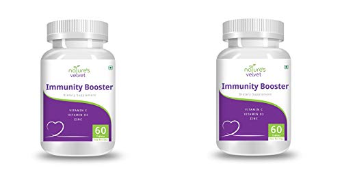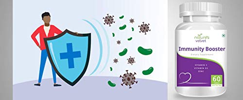 nature's velvet Immunity Booster with Vitamin C Vitamin D3 and Zinc for Strong Defence against Bacterial and Viral Infections - 60 Tablets - (1+1)