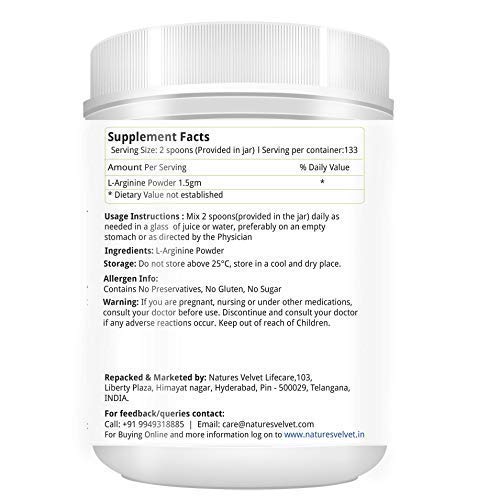 L-Arginine is an Amino Acid. Supplementation of l-arginine may assist with improved blood flow. This ensures more blood reaches your organs and muscles. And help the bodyÂs recovery process too. No Additives. No Fillers. Pure Powder Provide Support for Healthy Immune System Maintains Blood Sugar Levels Used for athletic energy & stamina Mens Wellness For Muscle Building and Endurance Not just increasing Blood flow Arginine Also Supports Energy Level. As It is an important precursor of nitric oxide (NO) it plays a role in the dilation of blood vessels.