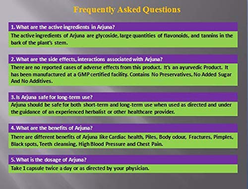 Nature's velvet arjuna-the bark of the arjuna tree has been used for several centuries for treating cardiovascular ailments. It's a unique herb that helps maintain a healthy heart and reduces the effects of stress and nervousness. It improves the blood circulation to the heart. As an adjuvant in ischemic heart disease monitors triglycerides level in blood regulates blood pressure effective cardiac function
