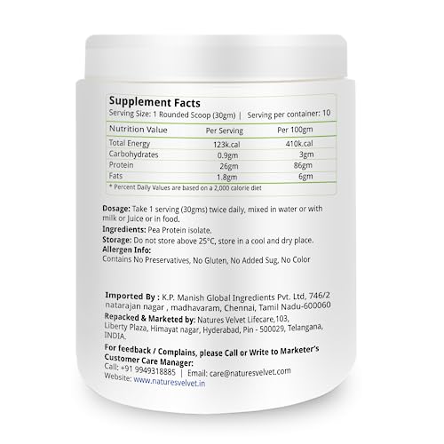 Nature's Velvet Pea Protein Isolate, 100% Vegan & Plant Based Protein, Rich in BCAAs, 300Gms - Pack of 1