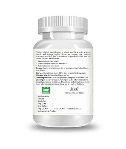 Nature's Velvet Saw Palmetto 160mg with Biotin for Prostate and Hair growth 60 Tablets