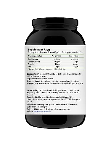 Nature's Velvet Vegan Protein,100% Vegan & Plant Based Protein, Rich in BCAAs, 1000gms -Pack of 1