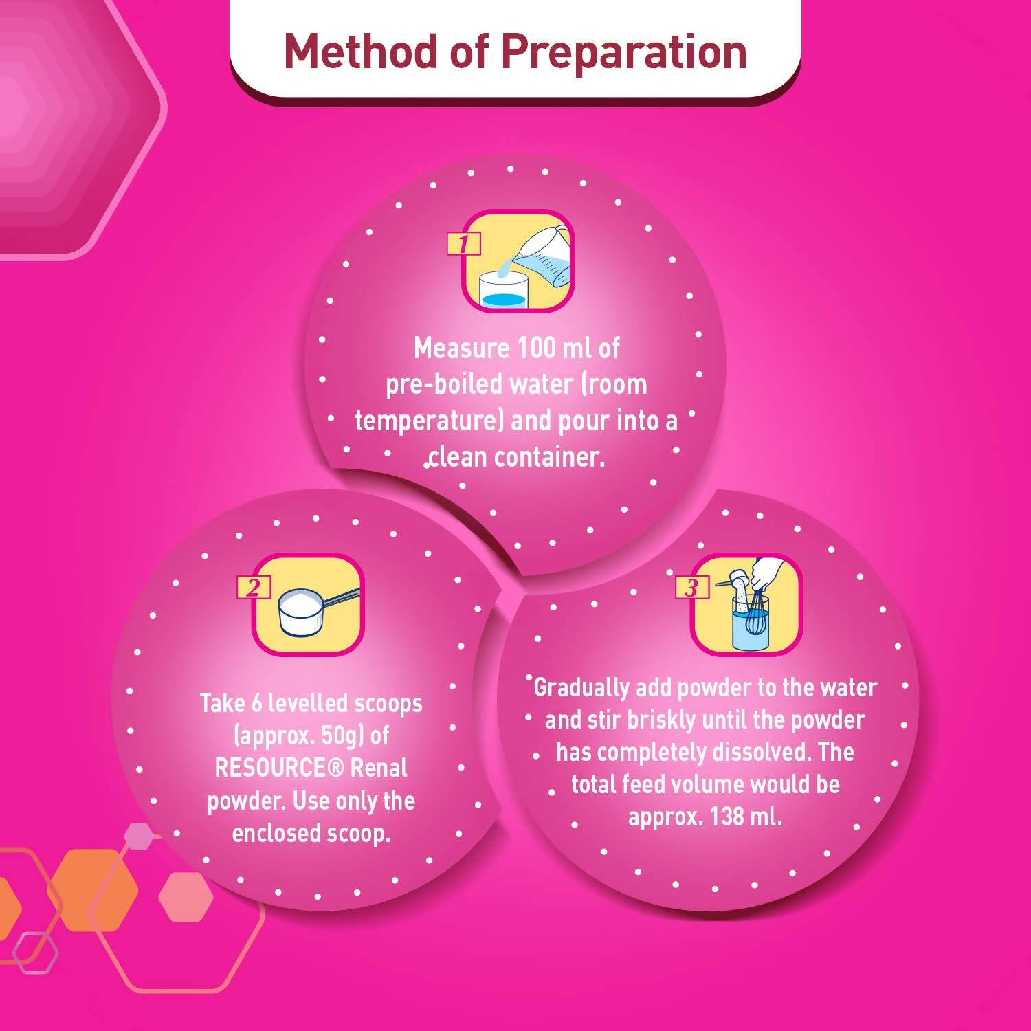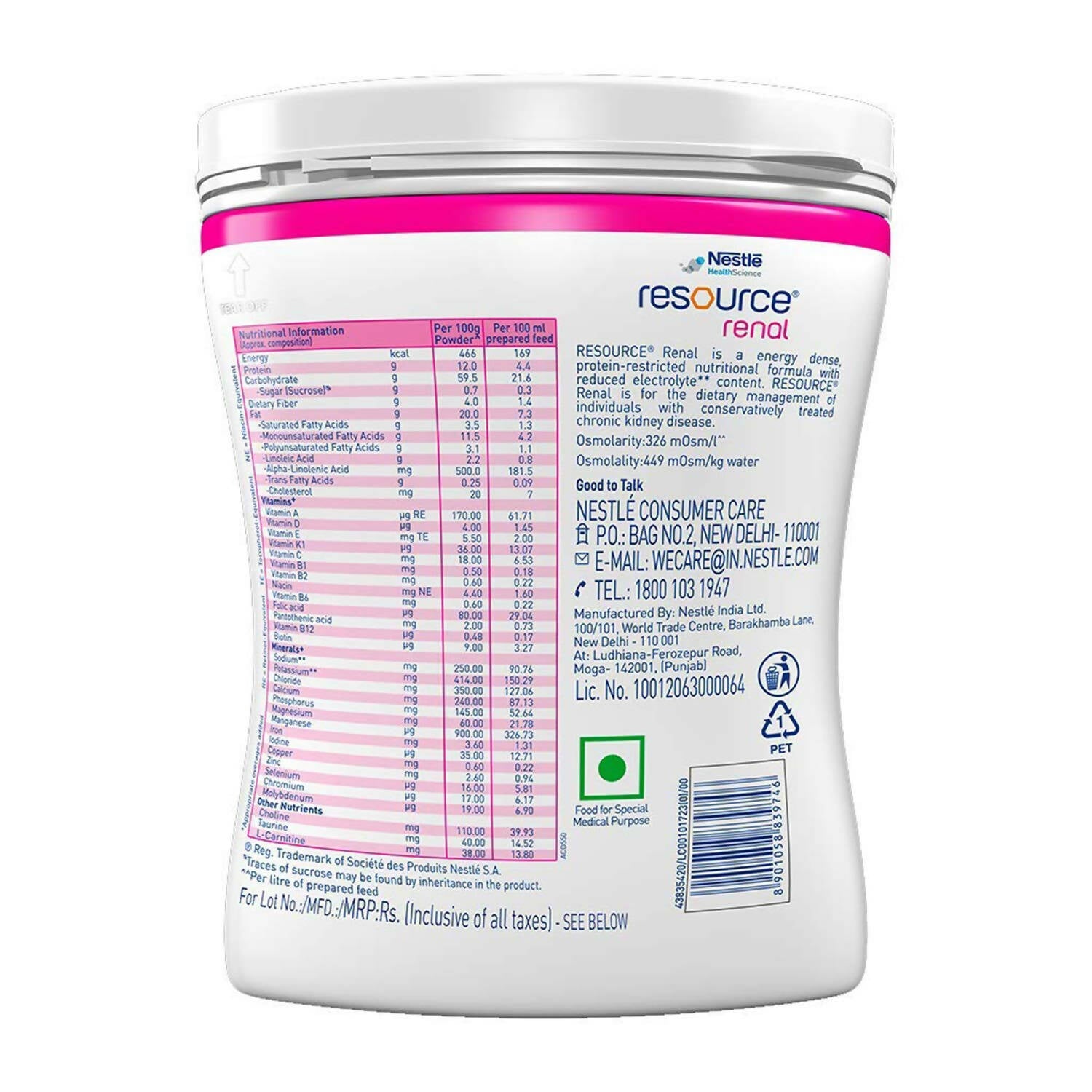 Nestle Resource Renal Protein Powder - Vanilla FlavorResource Renal contains 12g of protein per 100g of powderEnergy Dense,Protein restricted nutritional Formula with reduced electrolyteDirections to Use:Measure 100ml of pre-boiled water (room temperature) and pour it into a clean container.Take 6 leveled scoops (approx. 50g) of Resource Renal powder. Use only the enclosed scoop.Gradually add the powder to the water and stir briskly until the powder has completely dissolved. The total feed volume would be approx. 138 ml.Legal Disclaimer: Statements regarding dietary supplements have not been evaluated by the FDANote: Product images are for illustrative purposes only. Images/packaging/ labels may vary from time to time due to changes made by the manufacturer's manu