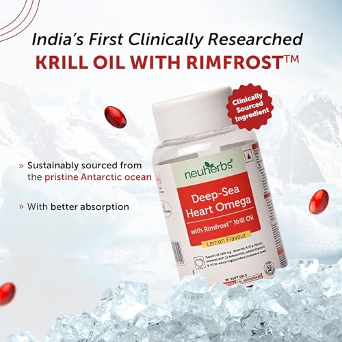 Heart health is an increasingly pressing health issue in India with a rising number of individuals facing heart challenges. Factors such as sedentary lifestyles unhealthy diets stress and genetics contribute to this growing concern. Introducing neuherbs Deep-Sea Heart Omega Krill Oil 100% pure Omega-3 Capsule Supplement sourced directly from the pristine waters of the Antarctic Ocean to help you conveniently manage heart health. Unlike others neuherbs krill oil formula combines Omega-3 from two potent sources: fish oil and krill oil. This krill oil omega 3 is packed with 2X Astaxanthin for potentially managing oxidative stress in the body and phospholipids to help absorb more omega 3. This heart omega krill oil supplement is unique as it contains essential Vitamins E & D3 for better circulation absorption & heart protection. EPA & DHA from Krill oil omega 3 are known to manage overall health by reducing triglyceride levels & cholesterol levels. The addition of refreshing lemon flavor in this krill oil enhances the experience making it a delightful addition to your daily wellness routine with no bad burps & odor.