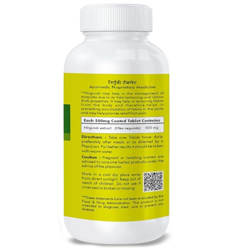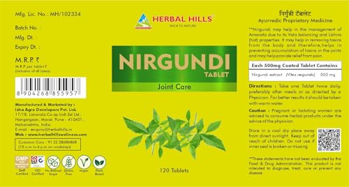 Herbal Hills Nirgundi tablets (Vitex negundo) 500mg for Joint Care & various health benefits (120 Tablets)