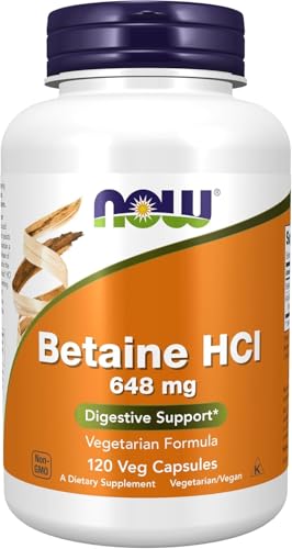 Now foods betaine HCL is formulated to support proper digestive conditions in the stomach. Hydrochloric acid (HCL) is normally produced in the stomach where it assists protein digestion by activating pepsin helps to maintain a healthy balance of gut flora and stimulates the release of intestinal enzymes. Pepsin is a protease produced in the stomach that partially breaks down proteins in foods.